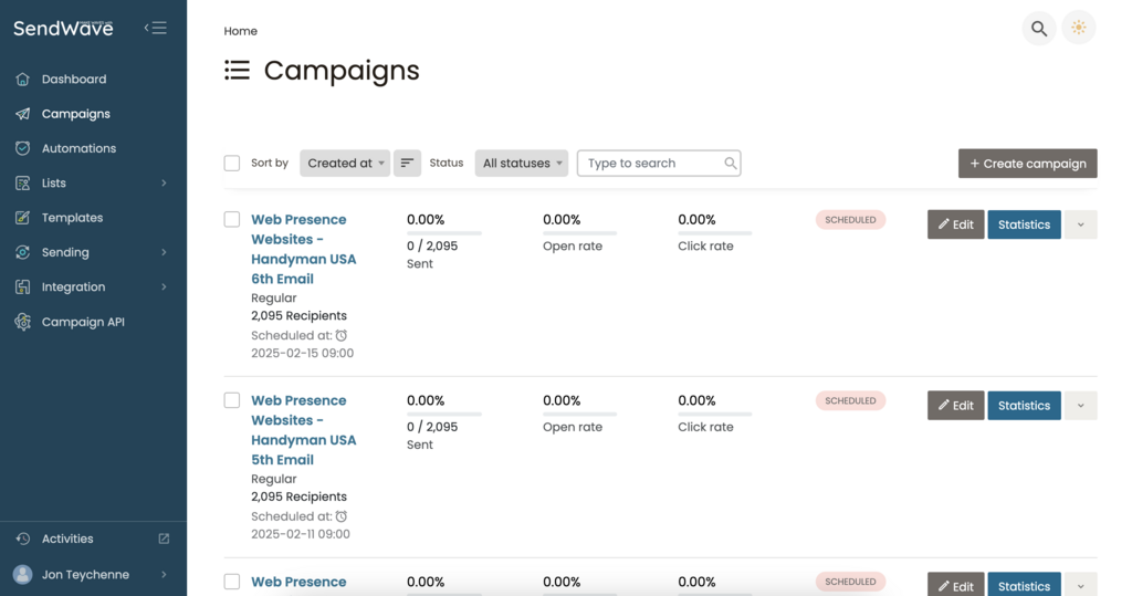 SendWave combines powerful bulk email capabilities with an intuitive interface, making it easy to send high-volume campaigns, automate workflows, and track performance—all without the complexity or high costs of traditional platforms.